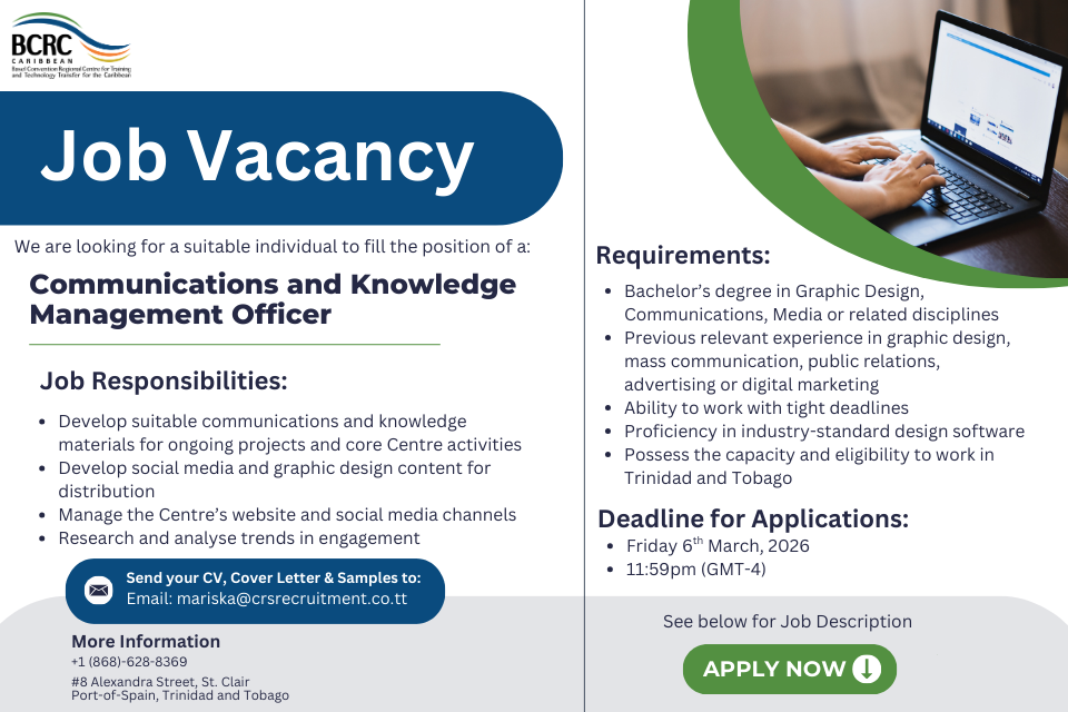 The Basel Convention - Stockholm Convention Regional Centre for the Caribbean (BCRC-SCRC Caribbean) successfully hosted its 11th Annual Steering Committee Meeting on Wednesday January 28, 2026. The Steering Committee is...